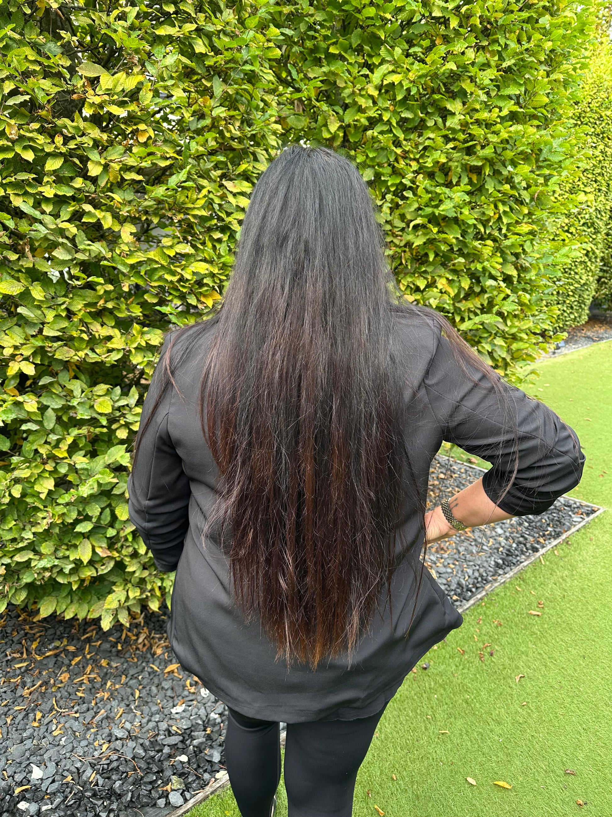 De blazer heeft 2 nepzakken aan de voorzijde en geen knopen.