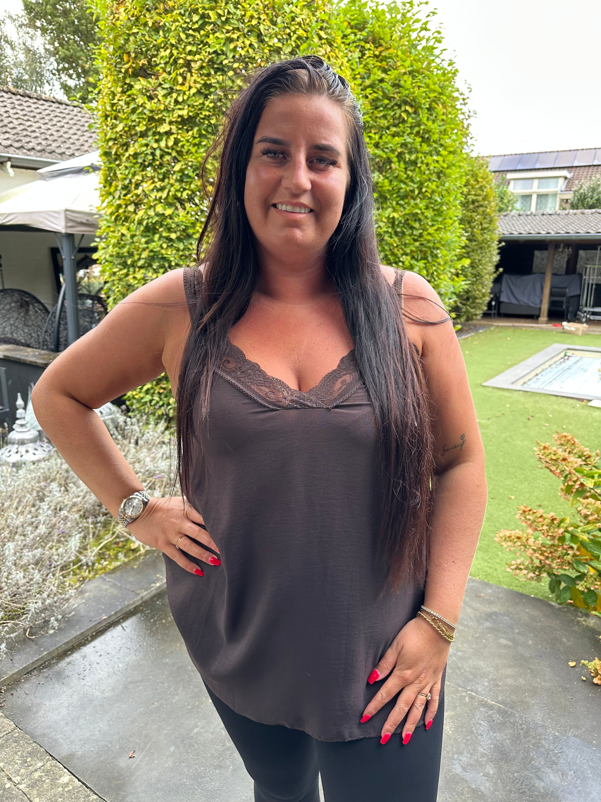 Dit mooie basis hemdje met een kanten randje is nu beschikbaar in de frisse voorjaarskleuren. Je kan deze leuk combineren met onze toffe spijkerjasjes met fijne stretch of natuurlijk onder een blazer. Als de zon echt doorkomt dan draagt dit hemdje altijd luchtig op een shortje, capri broek of lange zwierrok.
