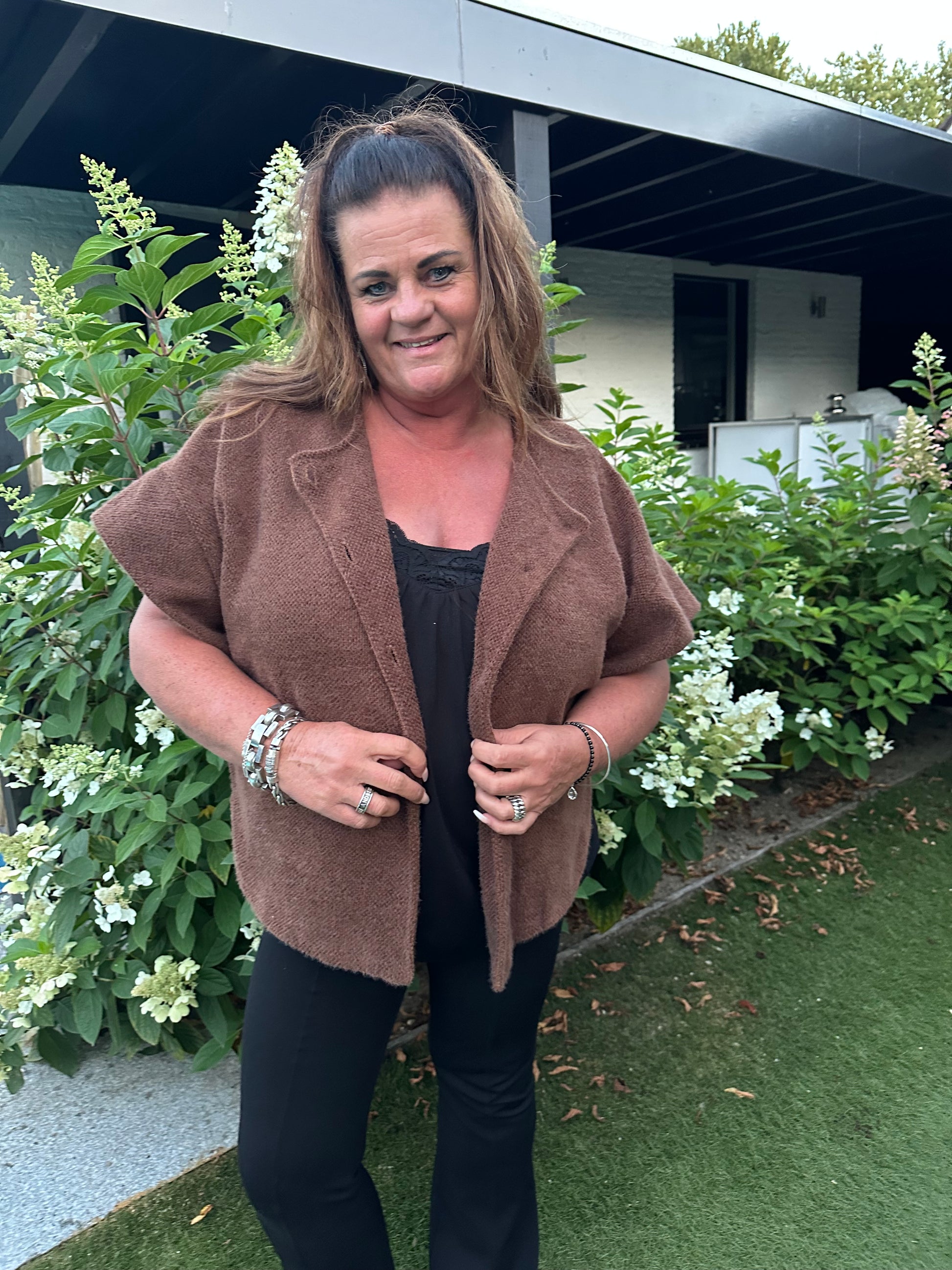 Mouwloos vest 3 KNOPEN BRUIN