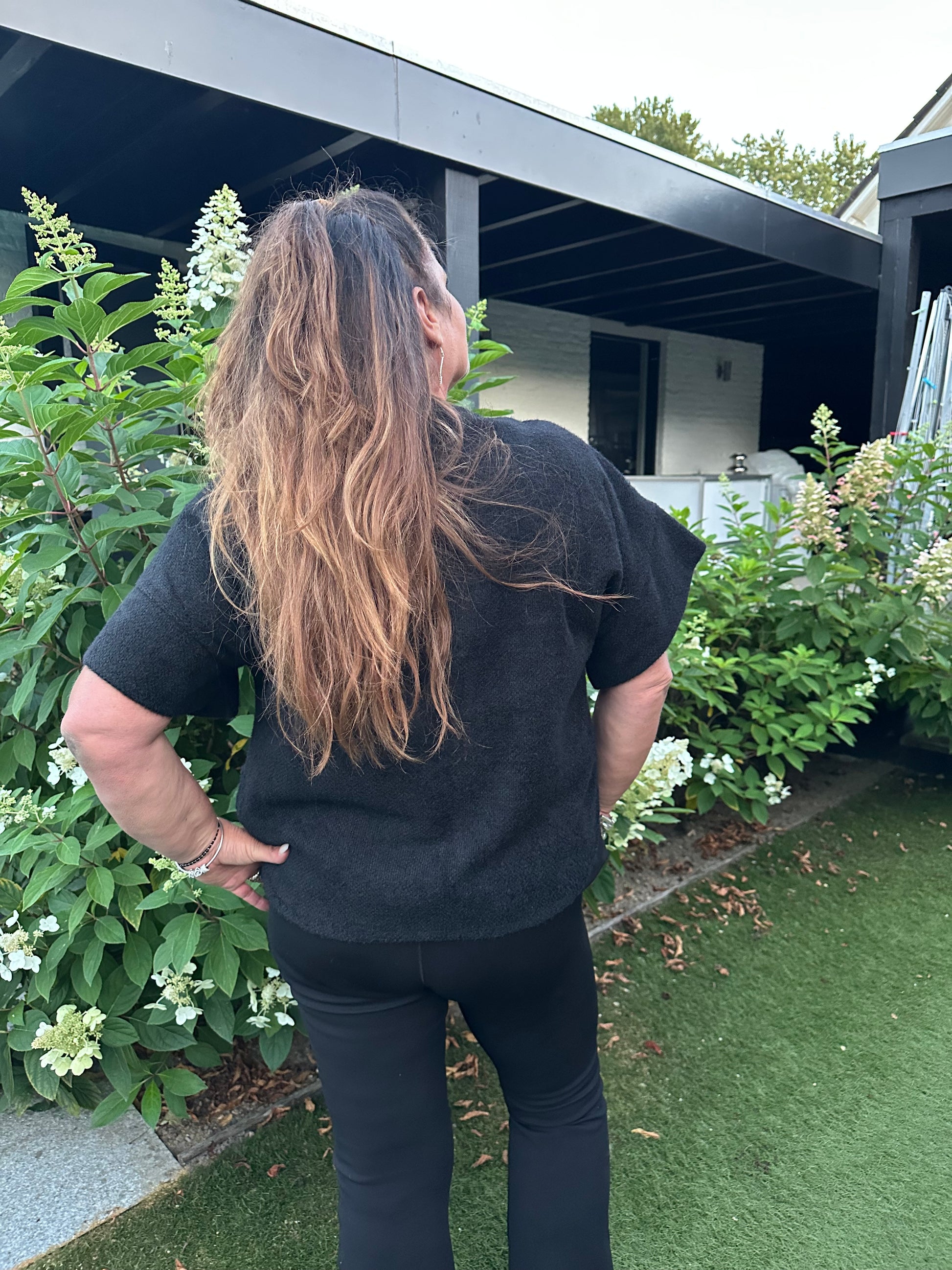 Ook leuk te dragen met een shirt met lange mouw eronder, zodat deze onder het mouwtje van het vestje uitkomt.