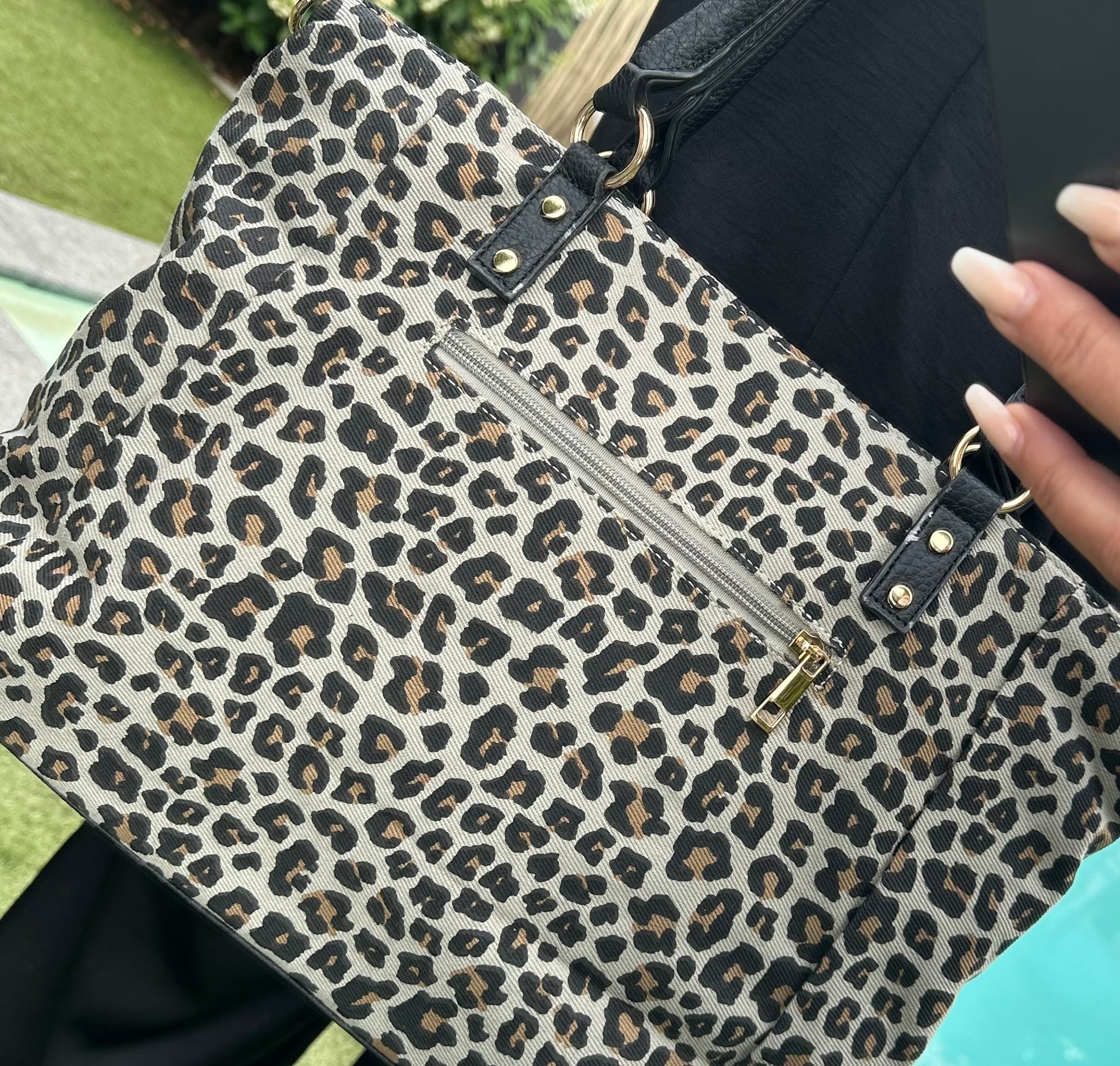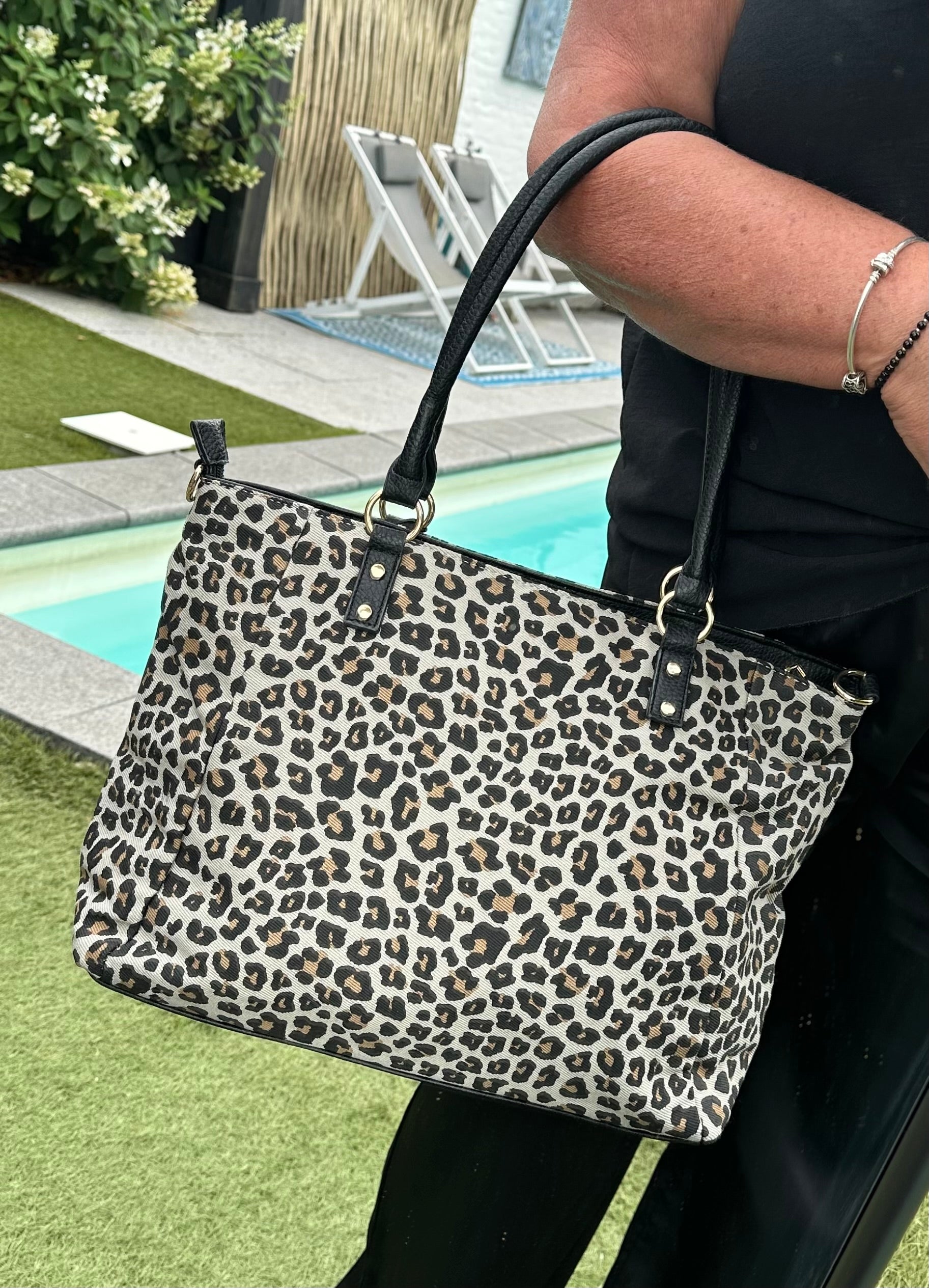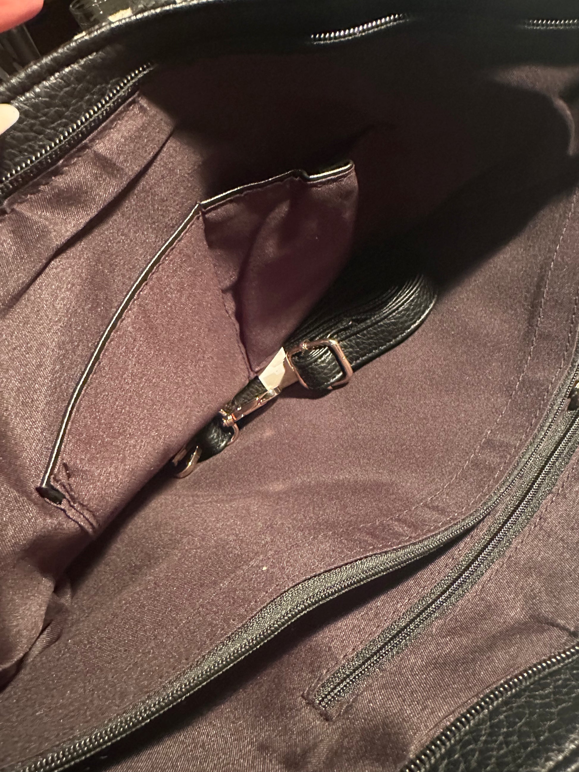 De tas heeft een zwart lang hengsel en 1 groot vak met extra vak met rits in het midden. Verder zit er aan de binnenkant aan de zijkanten meerdere vakjes. Ook aan de achterzijde van de tas zit een vakje met rits