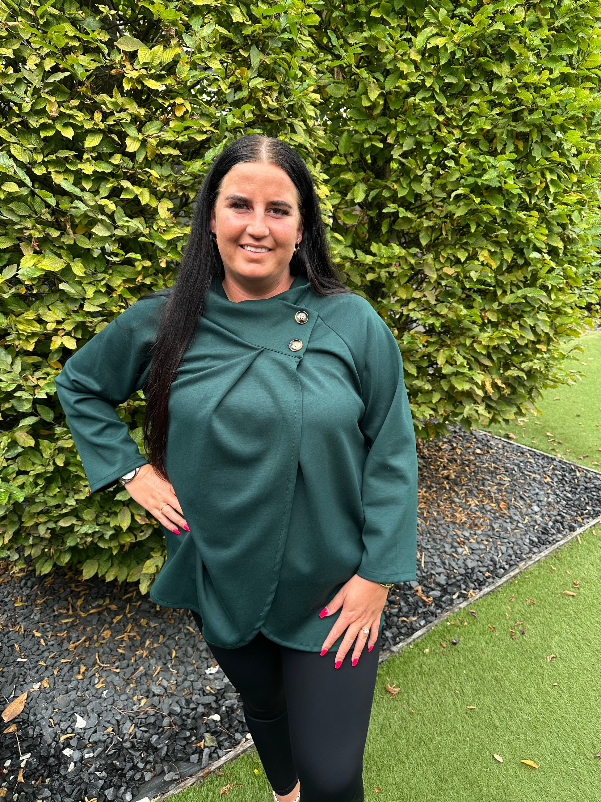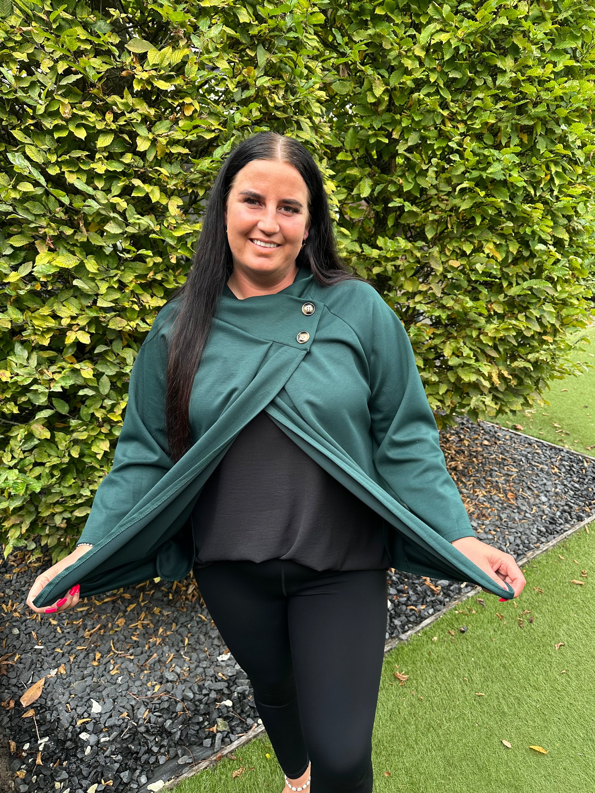 Poncho met mouwen en 2 knopen DENNENGROEN