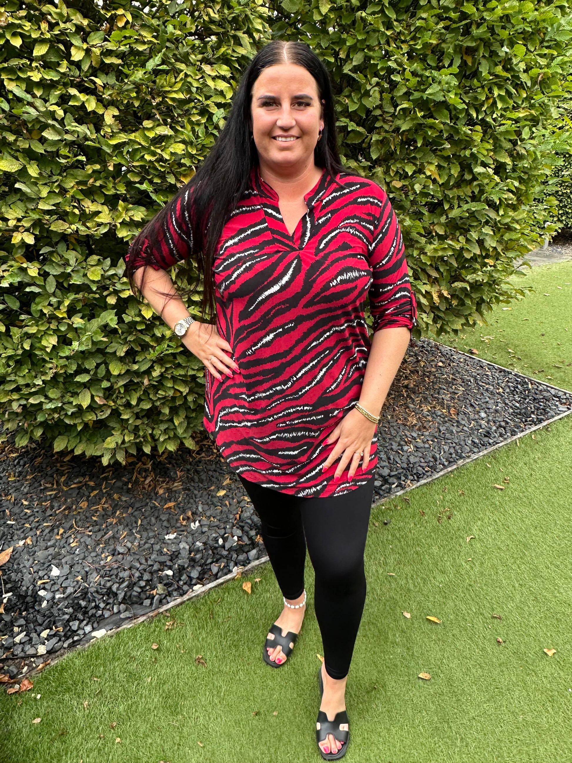 Deze fijne travel tunieken zijn beschikbaar in verschillende geweldige prints. De tuniek heeft een V hals zonder knopen. De voorkant is iets korter dan de achterkant en het heeft ophaalmouwen.