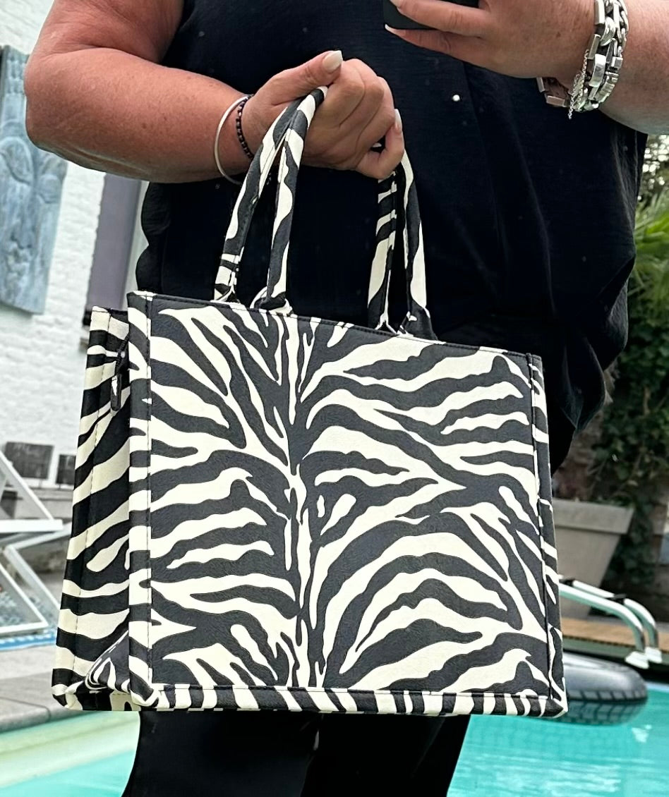 De tas heeft een lang hengsel in de print van de tas en 1 groot vak met aan de binnenkant aan de zijkanten meerdere vakjes.